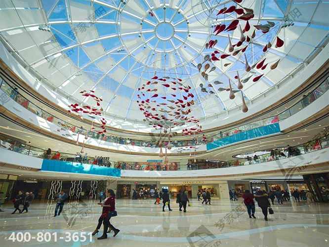 FSS天棚帘系统主要有管状电机和弹性张力系统组成。一端为驱动轴,内装管状电机;另一端为从动轴,内装弹簧机构,电机正转带动面料前行,另一端的弹簧逐渐收紧,将面料张挺,电机反转弹簧逐渐放松,遮阳面料卷回。其操作简便,电机工作时噪音小,运行平稳。