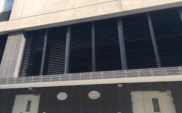 由于叶片之间连接处有防水槽及防水胶条,叶片两端同边框有毛条密封,故叶片完全闭合时可达到阻绝暴风雨的密闭效果。同时,此时的气密性能也达到最佳,中空的叶片结构能有效提高室内的保温效果。中空平板百叶窗配装驱动电机及智能控制系统后,能最大限度发挥其优点。在平常可做通风换气窗、采光遮阳窗、防暴风雨窗;在发生火灾时,接到消防信号后会立刻打开,实现消防排烟的功能。