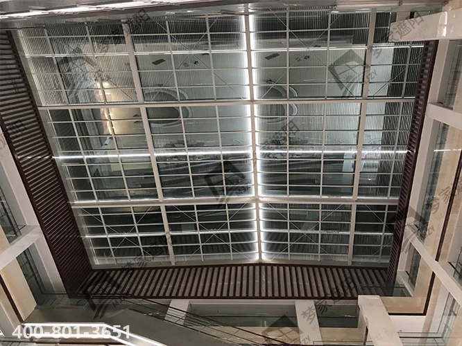 欧式百叶系统使用了独特的连杆驱动,能充分满足水平、垂直和斜面建筑遮阳要求,集百叶帘与天幕的功能于一体,具有调光、遮阳、保温、隔热等多种功能。