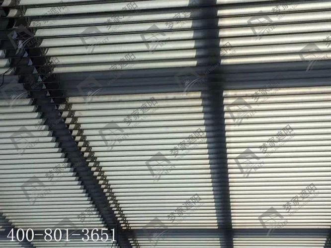产品介绍:百叶面板采用优质铝合金板材为基材,再经过数控折弯等技术成型单层铝合金叶片,根据需要可使用不同厚度,宽度的叶片,不同的开孔率保证一定的透光率和不同的遮阳效果。欧式百叶遮阳系统采用高强度88E铝合金叶片,叶片呈弧形,叶片分为电动和固定两种,电动可调角度在0-105°,可水平和垂直安装.,通过电机来带动百叶片的翻转角度,不同角度具有不同的遮阳、调光、通风、防雨、防风、防尘效果。